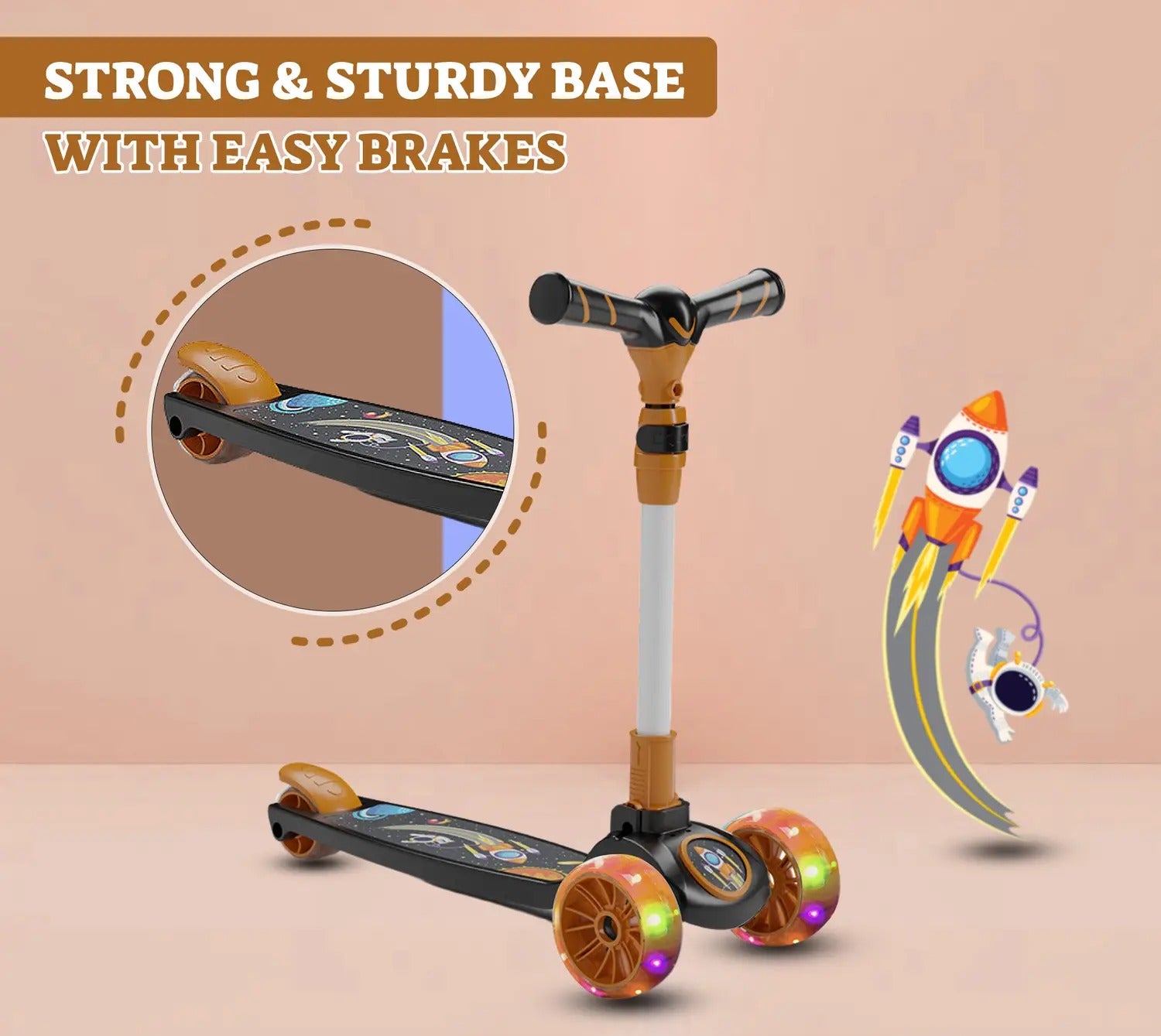 Kids 3-Wheel Scooter with LED Light-Up Wheels, Adjustable Handlebar, Anti-Slip Deck – Safe & Fun Ride for Toddlers (Orange)