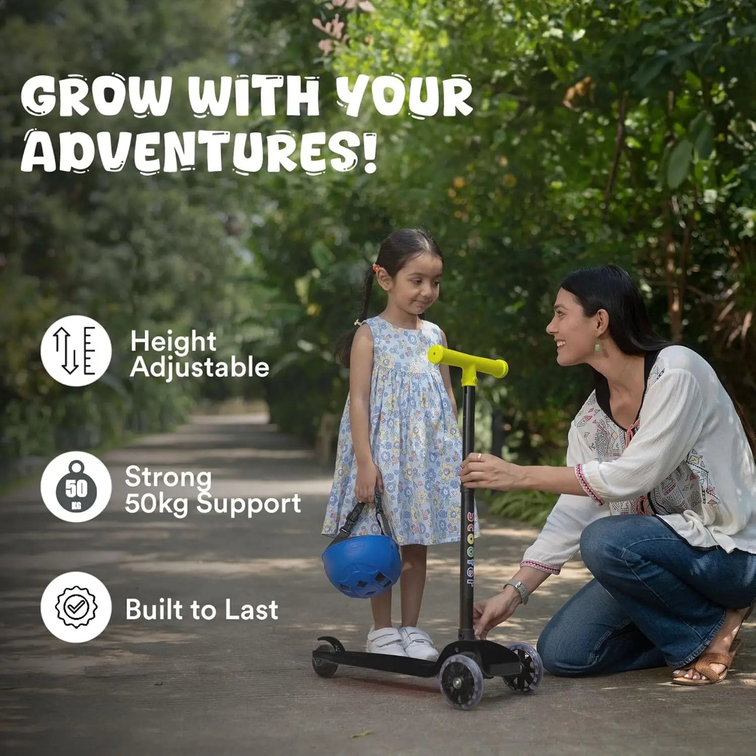 An adjustable handlebar grows with your child, while the wide anti-slip deck ensures secure footing. Built with durable, lightweight materials, this scooter is suitable for both indoor and outdoor play.